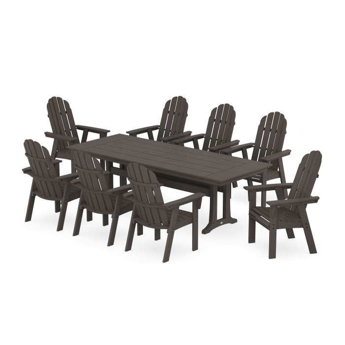 POLYWOOD Vineyard 9-Piece Curveback Adirondack Farmhouse Dining Set with Trestle Legs