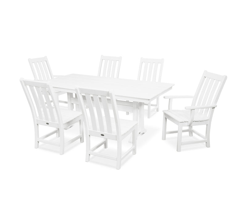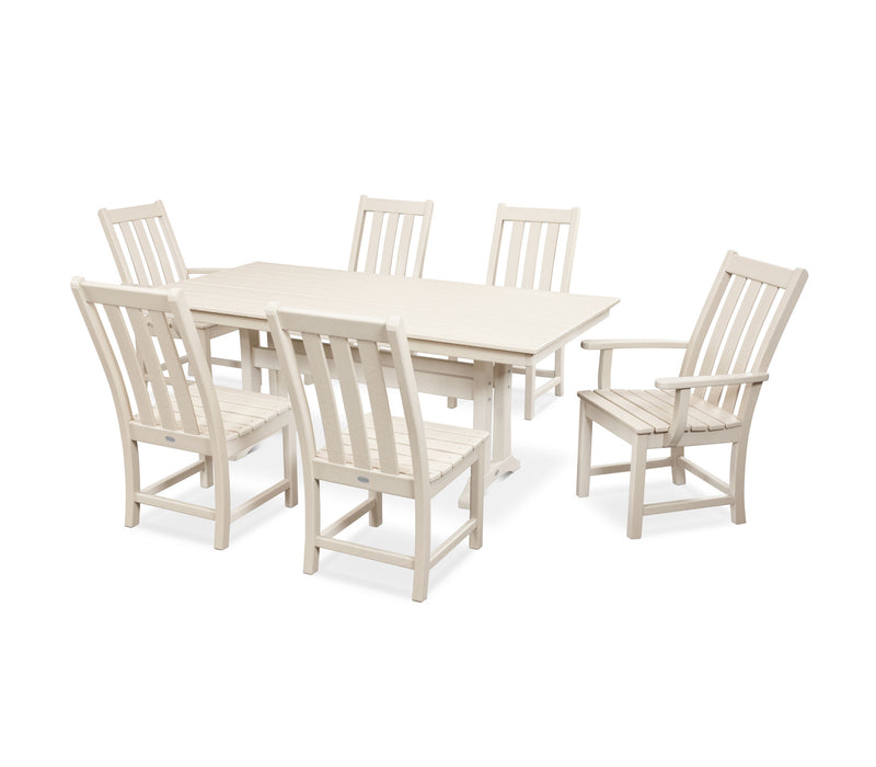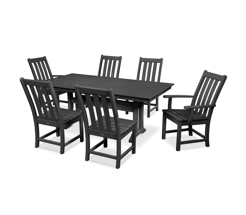 Bring elevated comfort and style to your outdoor dining space with the Vineyard 7-Piece Farmhouse Trestle Dining Set.