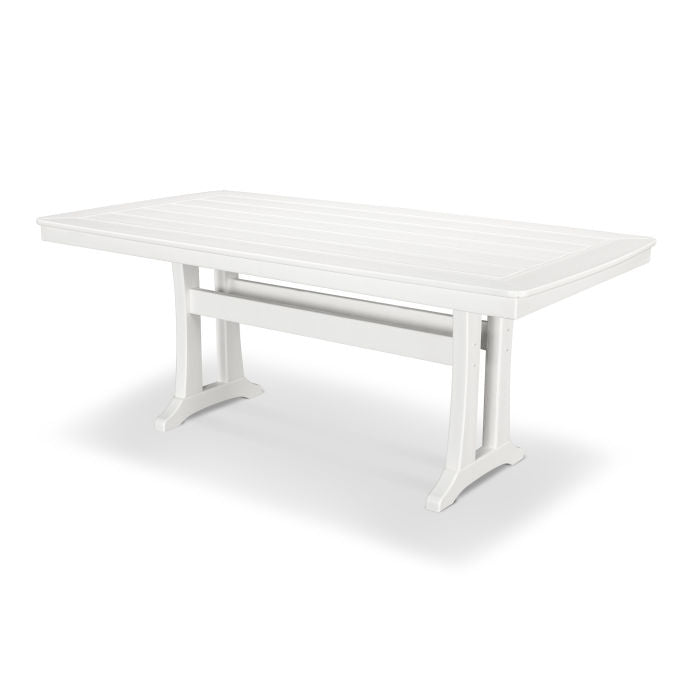 Create a relaxing outdoor dining atmosphere with the rectangular Nautical Trestle 38" x 73" Dining Table.