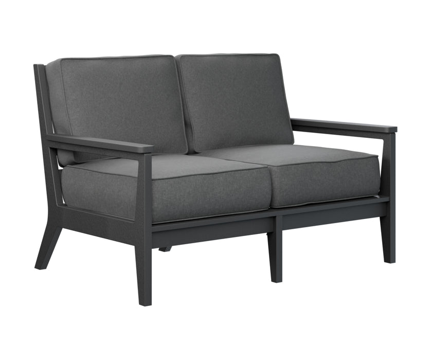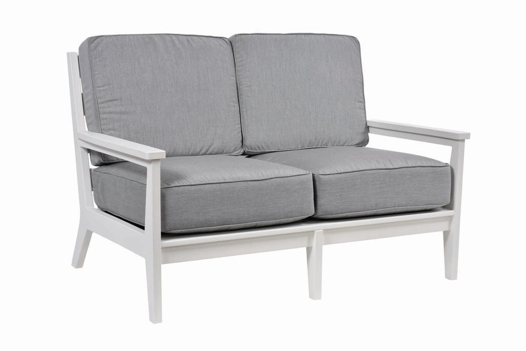 Cozy up with room for two on this plush, cushioned outdoor couch. Deep soft cushions crafted from Sunbrella fabric on virtually indestructible poly material make this a seat you will love.