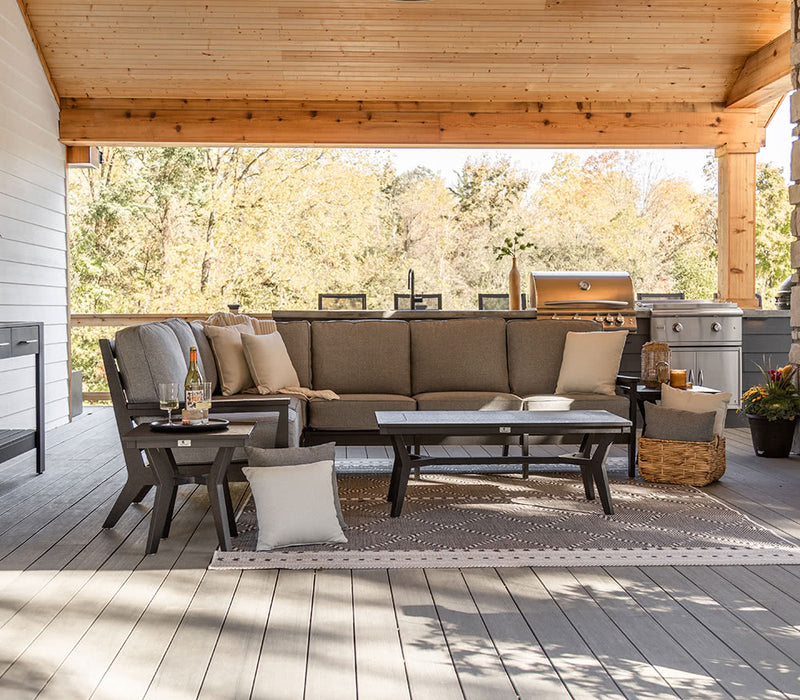 Frame your space with the Berlin Gardens Mayhew Sectional seating. This L-shaped sectional is the perfect focal point with ample seating for parties and special events. Treat yourself to the ultimate in comfort and durability. Never replace your patio furniture again!