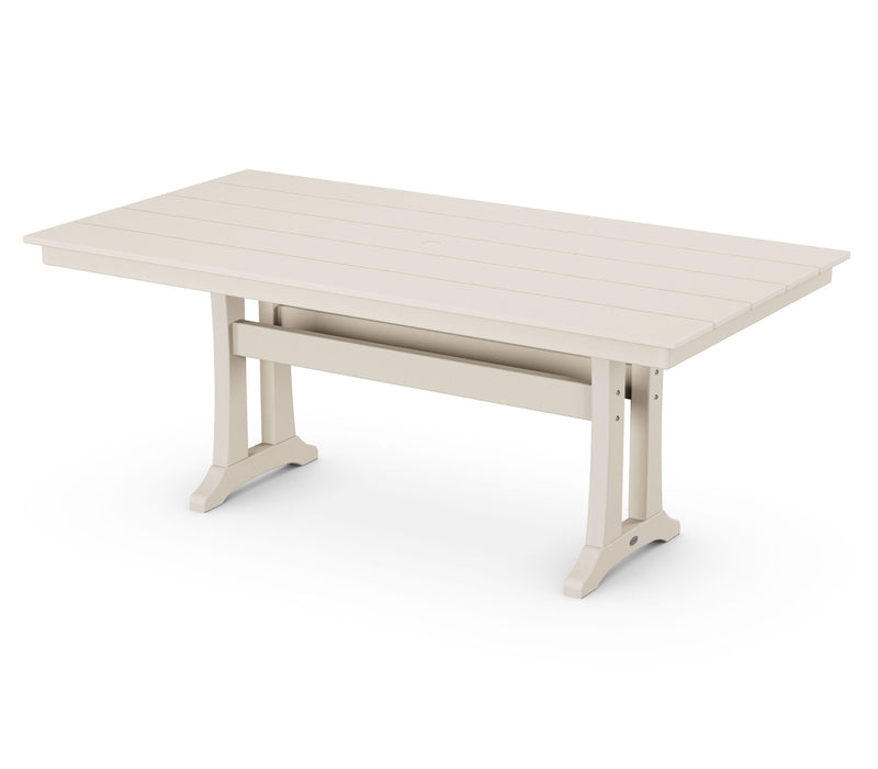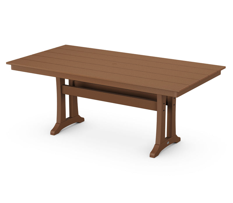 Give your outdoor dining space a wonderfully rustic feel with the Farmhouse Trestle 37" x 72" Dining Table.