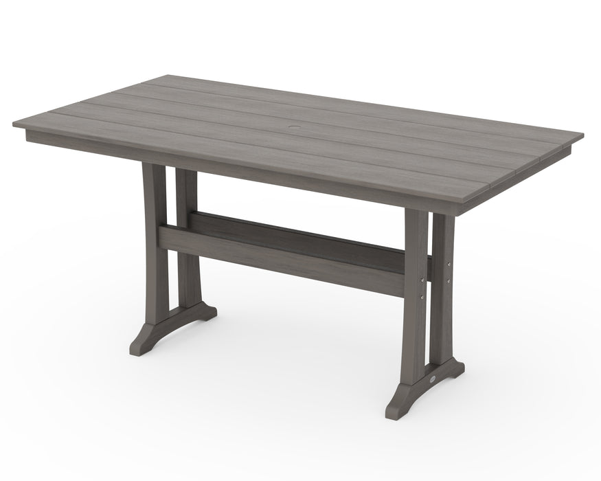 Take your outdoor area to new heights with the trendy POLYWOOD Farmhouse Trestle 37" x 72" Counter Table. Add elegance and function to your outside living space with this strong and attractive table.