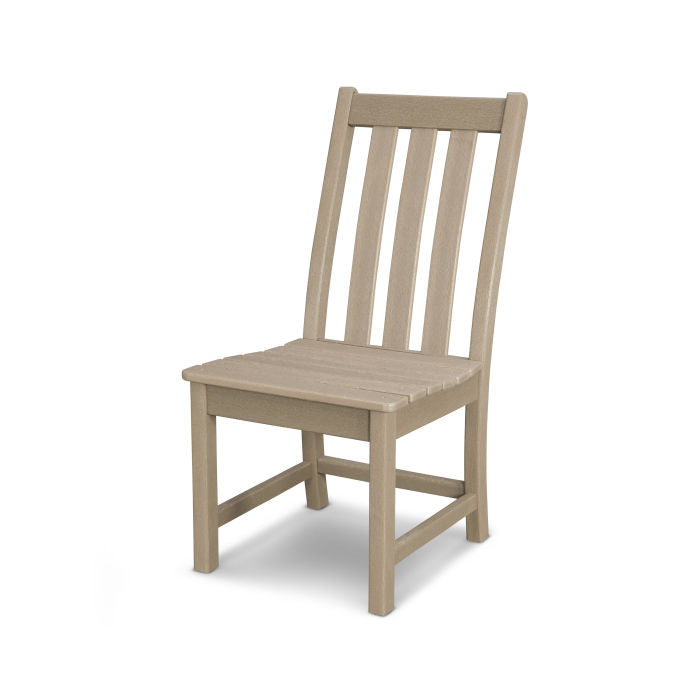 The POLYWOOD Vineyard Dining Side Chair is made in the USA from genuine POLYWOOD® lumber, an exclusive material which includes landfill-bound and ocean-bound plastics. With a 20-year warranty, this US-crafted, all-weather chair needs no painting or waterproofing. Its marine-grade quality hardware allows for salty-spray protection under the sun, rain or snow.