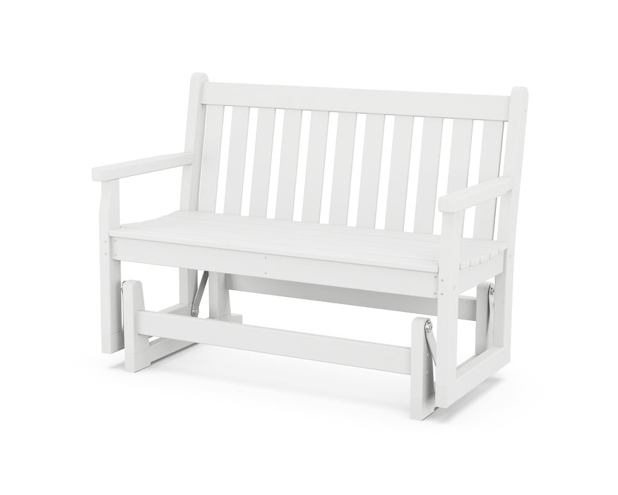 There's nothing like the smooth motion of a glider to carry you away. This bench has a lot of space for you and a visitor to sit in comfort and enjoy your outside home space. With its upscale style, the POLYWOOD Traditional Garden 48" Glider will certainly make any deck, outdoor patio, or yard more comfortable.
